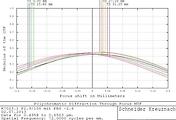 빛은 파장의 길이에 따라 굴절률이 달라져 백색광을 사용하는 경우 초점이 퍼지는데, 왼쪽은 그 퍼지는 정도를 나타낸 그래프 입니다. 그래프상 약 450nm, 540nm에서 초점이 정확하게 맞으며 그 외의 파장대에서도 초점은 정위치로부터 약 0.1mm내에 들어오게 설계 되어 있습니다. |