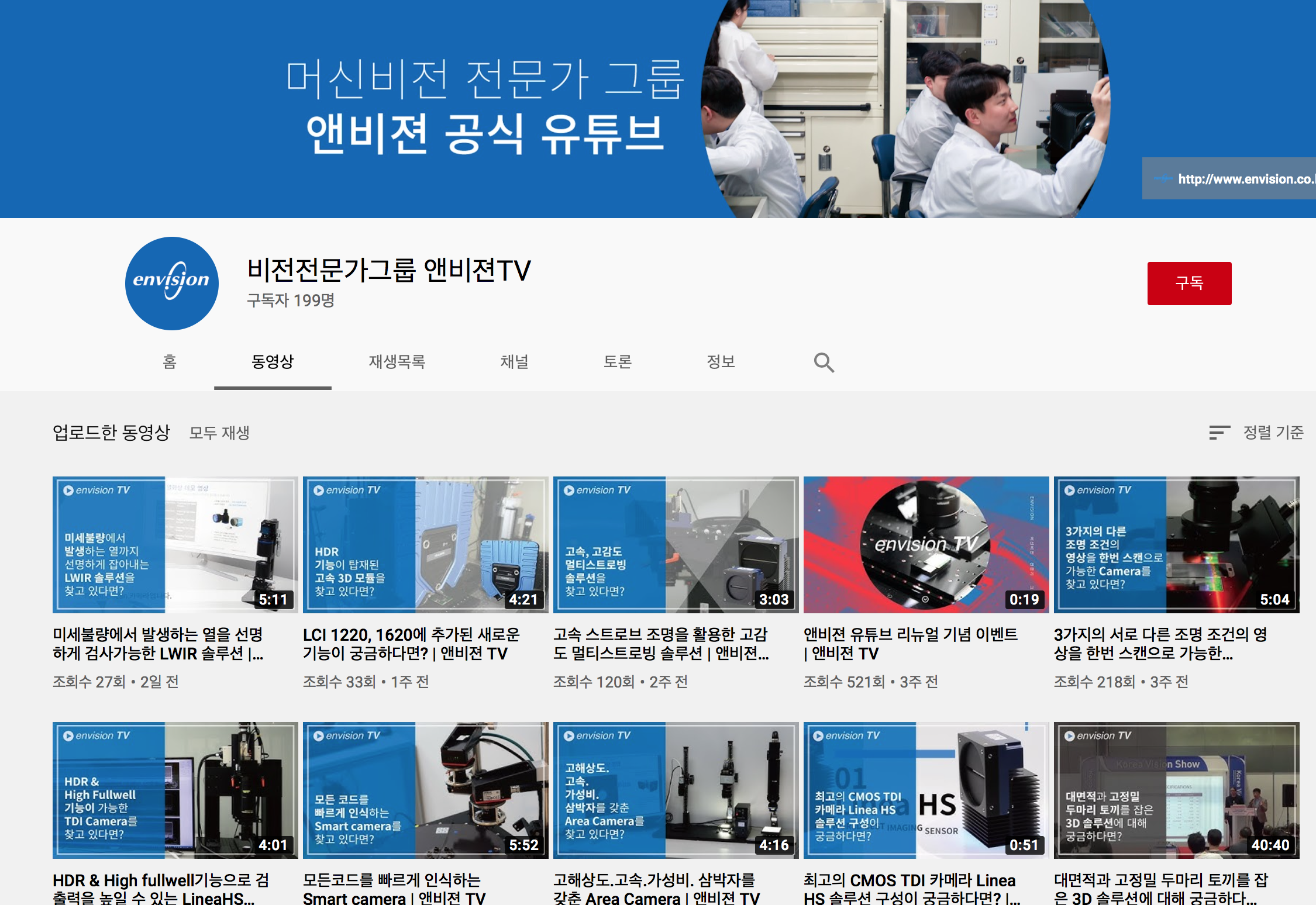 해당 채널에는 아래와 같이 앤비젼의 다채로운 스토리가 담긴 영상들이 가득 준비되어 있습니다.